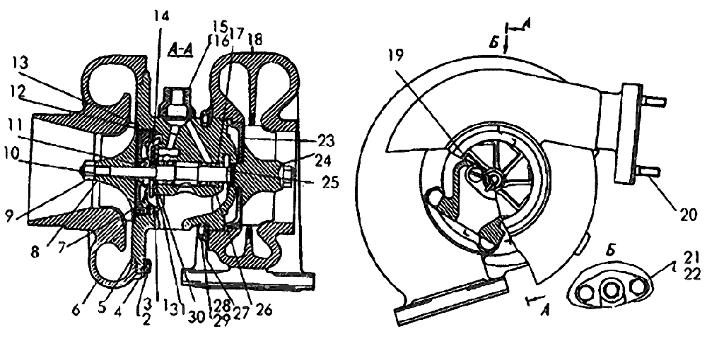 Турбокомпрессор ТКР-8,5 в разрезе