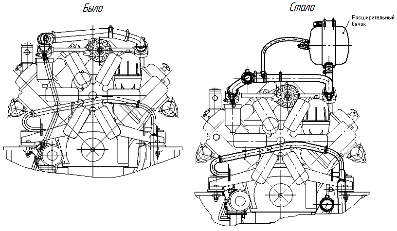 Для повышения эффективности и надежности работы системы охлаждения двигателя введен расширительный бачок КамАЗ 5320-1311010-30, применен более мощный радиатор водяной 54115Ш-1301010-01, применен алюминиевый радиатор масляный 50К-1013010-02. Изменена конструкция блока радиаторов для снижения обдува радиатора отраженным горячим воздушным потоком от двигателя.