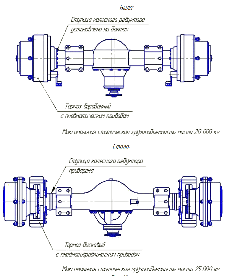 С целью повышения надежности мостов ведущие мосты ОДМ.73.001-6 производства ЛКМЗ, Украина заменены на мосты ведущие ZL 45-1 производства фирмы «Цзинь-Чэн-МОСТ», Китай.
