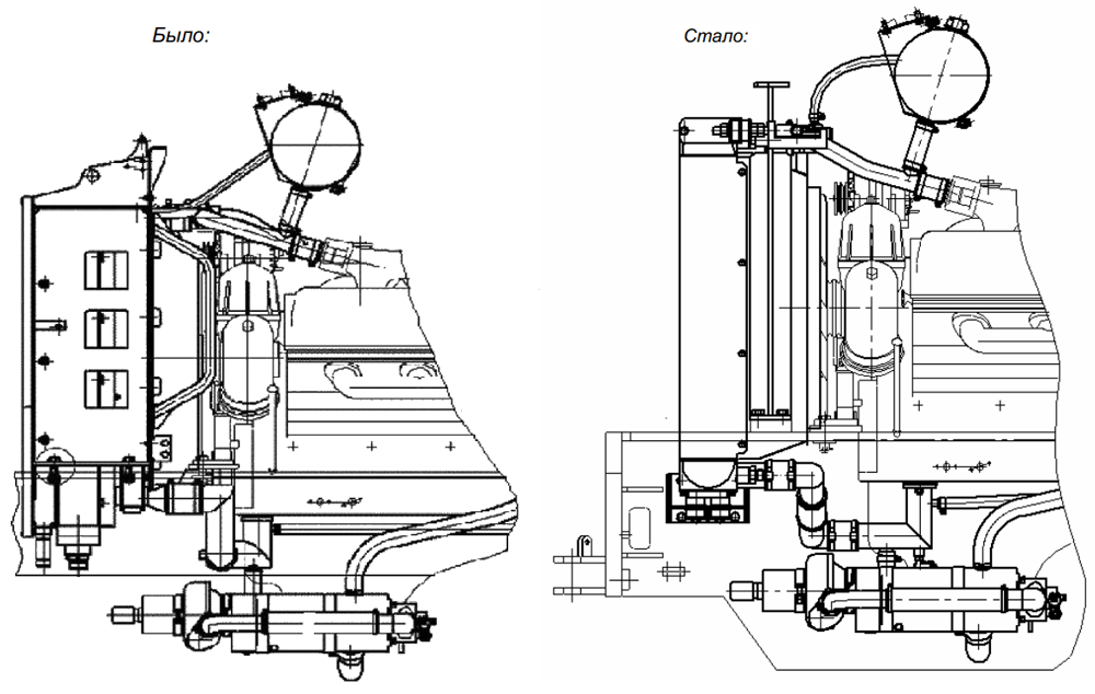 Для дополнительной защиты ячеек радиатора от загрязнения введена рамка с сеткой ЧТЗ-ПК65.52.04.050.