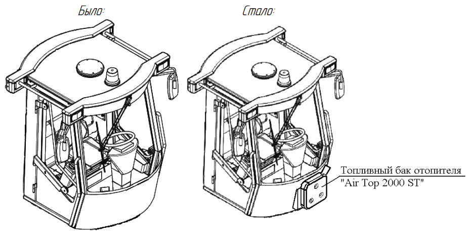 Для улучшения условий работы оператора в кабину введен дополнительный отопитель «Air Тор 2000 ST» (Webasto).