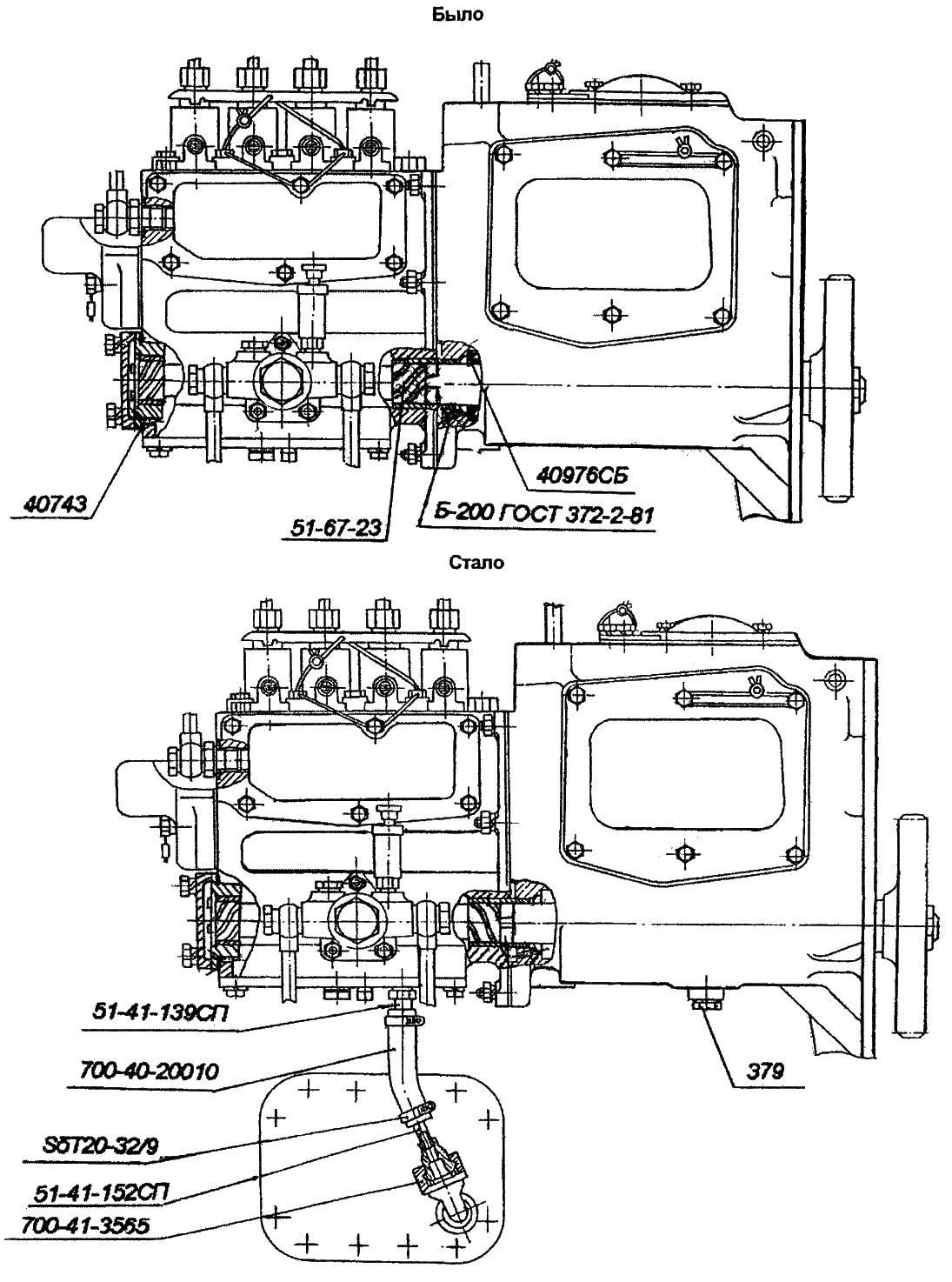 На тракторах Т10М с двигателем ЯМЗ и механической трансмиссией (Т10М.6100) заменен сервомеханизм муфты сцепления серийным сервомеханизмом 50-15-118СП и узел привода насоса НШ100. Усилена балка установки педали. Изменена схема передачи управления от валика сервомеханизма до рычага муфты сцепления. Кронштейн крепления сервомеханизма на кожухе муфты сцепления выполнен разъемным, позволяющий проще снимать сервомеханизм с трактора.